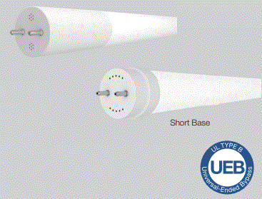 8.5W 24"/2' T8 FROSTED GLASS LED G13-MEDIUM BIPIN BASE =17W 120V-277V TYPE B-BALLAST BYPASS SINGLE OR DOUBLE ENDED 3500K CRI-82 1050LM 220D BEAM ANGLE 60000HRS ENCLOSED/DAMP LOCATION RATED L 23.19" D 1.00" 0.24LBS