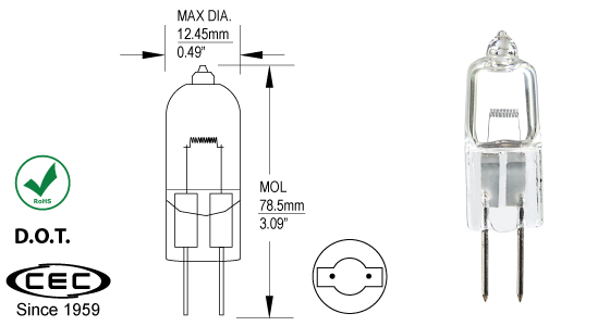 12.8V 8W HALOGEN T3 G4 500HR MOL 1"