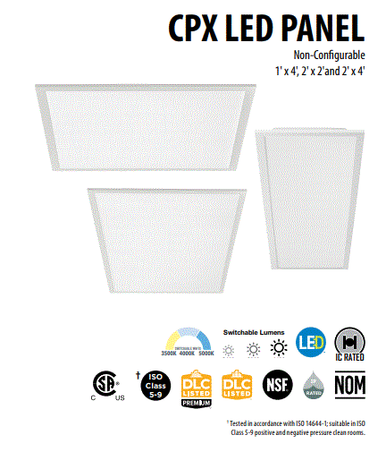 19.5W 19.7W 27.2 28.2W 28.4W 33.7W 35.5W 35.7W 1X4 LED FLAT PANEL 120V-277V SWITCHABLE WATTAGE & CCT-SELECTABLE 3500K 4000K 5000K CRI>80 2500LM 3200LM 4000LM CPX L 47.8" W 11.8" H 2.1" 7.40LBS