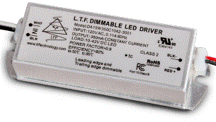 15W LED DRIVER CONSTANT CURRENT CC 120VAC-IN 10-42VDC-OUT 350mA DIMMABLE ELV & TRIAC PHASE DIMMING PF:>0.90 IP44 WIRED SIDE LEADS T24- COMPLIANT L 3.03" W 1.22" H 0.83" L.T.F.