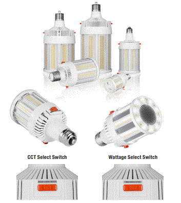 60W/90W/120W DUAL SELECTABLE HID REPLACEMENT LED EX39 EXCLUSIONARY MOGUL 3000K/4000K/5000K CRI>80 120V-277V 9000LM/13000LM/18000LM 4KV SURGE SUPPRESSION 50000HR L 8.31" D 4.01" 8.13LBS