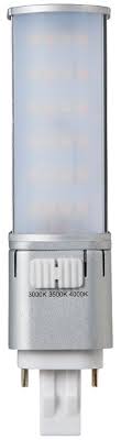 7W LED PL STYLE 2PIN-GX23-2 BASE =26W CFL 120V-277V HYBRID TYPE A & TYPE B HORIZONTAL MOUNT CCT SELECTABLE 3000K 3500K 4000K CRI>80+ 900LM-950LM 200DEG BEAM ANGLE OPEN FIXTURE RATED 50000HRS L 5.40" D 1.30"