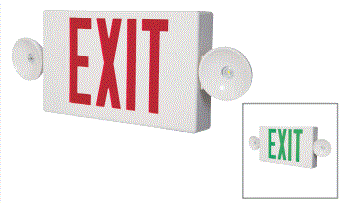2.5W RED OR GREEN LED EXIT & EMERGENCY SIGN 120V/277VAC 100LM W/25FT COVERAGE SELF-DIAGNOSTIC 90 MIN RUN TIME 24HR RECHARGE TIME WHITE FINISH UL924 DAMP LOCATION RATED T20/COMPLIANT W 19.75" H 7.5" D 2.13" 4.05 LBS
