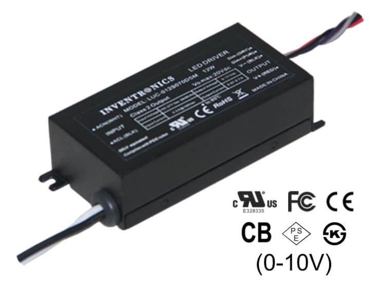 12W LED DRIVER CONSTANT CURRENT CC 90-305VAC-IN 17-34VDC OUT 12W MAX 350mA DIMMABLE 0-10V COMPATIBLE WITH PASSIVE DIMMERS IP20 RATED INDOOR USE ONLY