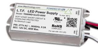 60W ELECTRONIC TRANSFORMER POWER SUPPLY 277VAC-IN 12VDC-OUT DIMMABLE 0-10V DIMMING ELV LOW VOLTAGE LTF 4.22"L 1.75"W 0.97"H