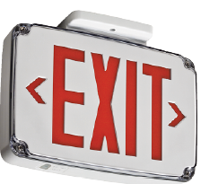 INDURA WET LOCATION EXIT SIGN BLACK HOUSING SINGLE FACE GREEN LETTER COLOR NICKEL CADMIUM BATTERY TAMPER RESISTANT SCREW HARDWARE