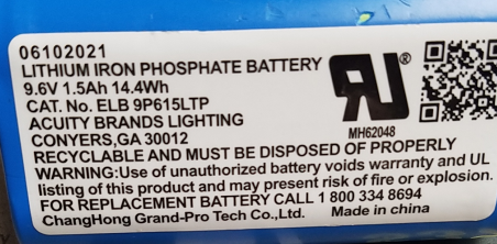 ELB-9P615LTP LITHONIA LITHIUM IRON PHOSPHATE BATTERY 9.6V 1.5Ah 14.4WH |