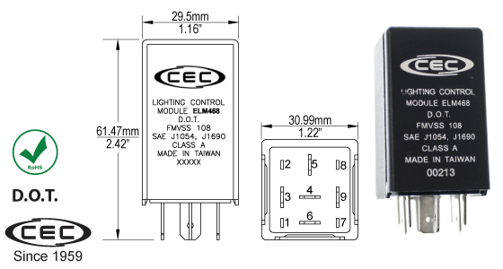 ELM468 12.8V (12V) 2.1A 9 PRONG TERMINAL LIGHTING MODULE, TURN SIGNAL FLASHER CHRYSLER JEEP DODGE NOT FOR LED |