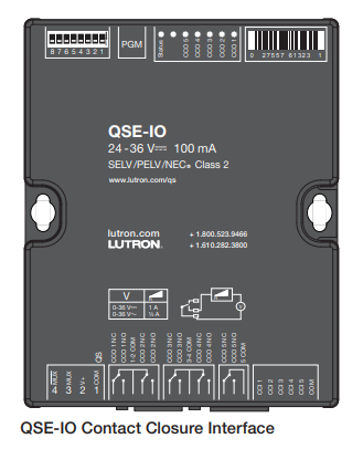 QSE-IO CONTROL INTERFACE 24-36V 100mA SELV/PELV/NEC CLASS 2 5-INPUTS LUTRON L 4.25" W 5.25" H 1.0" |