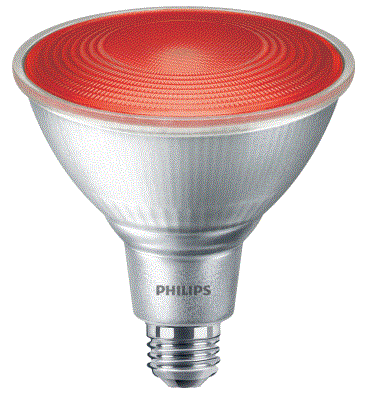 13.5PAR38/PER/RED/G/E26/ND/ULW 13.5W LED PAR38 RED COLOR LENS E26-MEDIUM SCREW BASE 120V NON-DIM FLOOD 40DEG 10950HRS L 5.25" W 4.81" 0.77LBS |