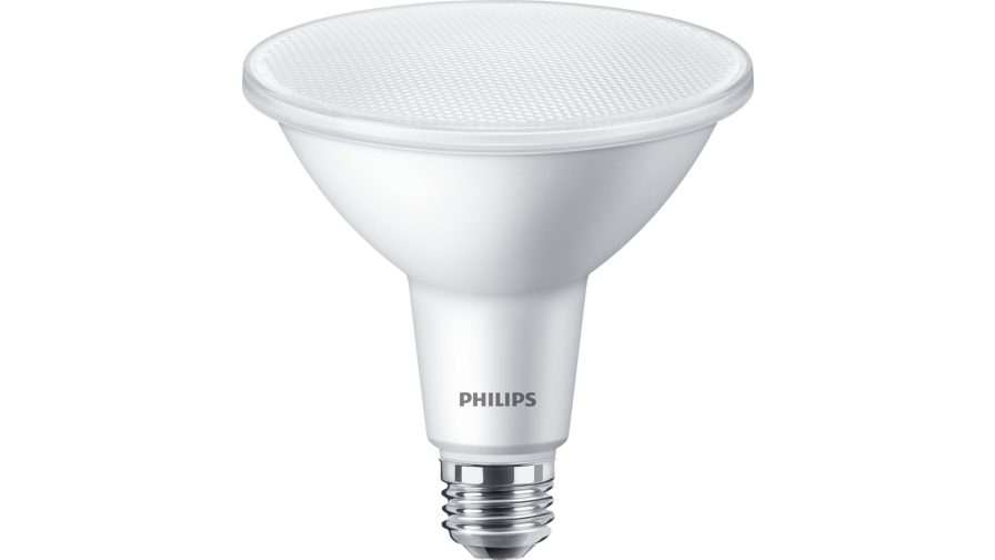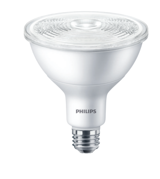 14PAR38/LED/835/F25/GL/DIM-120V 14W 1200LM PAR38 LED MED 3500K 80CRI 120V DIMMABLE 25DEG BEAM 25000HR ENCLOSED FIXTURE RATED =120W 4.75"DIA |