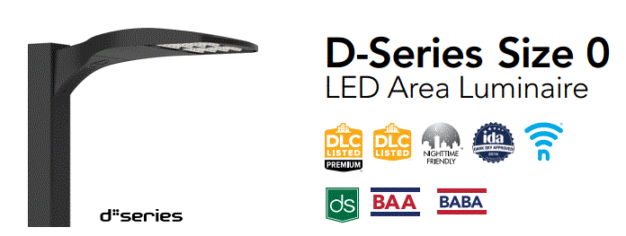 DSX0-LED-P5-30K-70CRI-T3M-MVOLT-SPA-DDBXD 90W LED 40-COUNT AREA LUMINAIRE D-SERIES SIZE 0 P5 FORWARD OPTICS TYPE III MEDIUM DISTRIBUTION 3000K CRI-70 11601LM 120V-277V W/SQUARE POLE MOUNTING #8 DRILLING 3.5" MIN 100000HRS DARK BRONZE FINISH L 27.70" W 14.06" H 7.80" 24.21LBS |