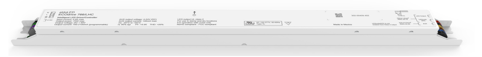 EC0766L2-1150-LIN-10.00MIN-16VAX-ON eldoLED LED DRIVER 766/L2 75W 120-277VAC/IN, 2-55V/OUT 700mA-2100mA (PROGRAMMED TO 1150mA) LINEAR CASE W/SIDE FEED 16V AUX PF:>0.90, 0- DIMMING TO 10%, L 16.70" W 1.20" H 1.10" 0.93LBS |
