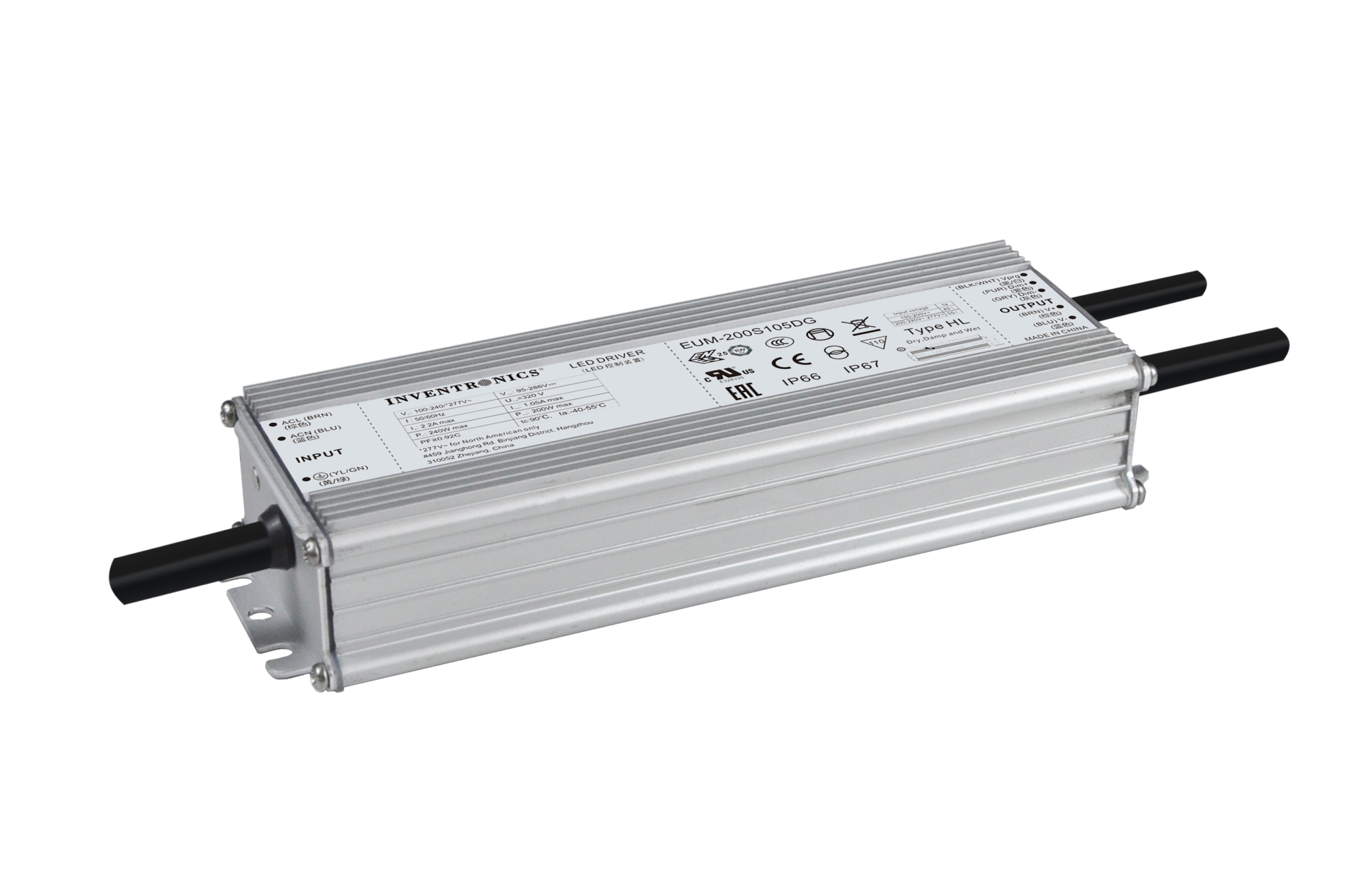 EUM-200S105LT 200W PROGRAMMABLE LED DRIVER CONSTANT CURRENT CC 90-305VAC-IN 127-300VDC-IN 95-286VDC-OUT 700mA DEFAULT 700mA-1050mA RANGE 200W MAX DIMMABLE 0-10V PWM 3-TIMER MODES INV DIGITAL DIMMING DIM TO OFF FUNCTIONALITY WET & HAZARDOUS LOCATION RATED IP66 *IN-HOUSE PROGRAMMING NEED mA* |