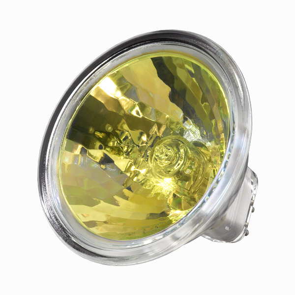 FNC/FG 50W MR16 YELLOW FRONT GLASS GU5.3 BIPIN 12V CA TITLE 20 COMPLIANT |