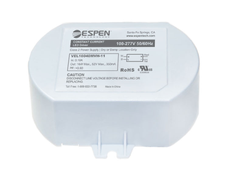 VEL6700120H ESPEN 16.5W CC-CONSTANT CURRENT LED DRIVER 120VAC/IN 13V-24VDC/OUT 700mA L 2.40" W 2.40" H 1.13" |