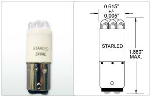 DCB1445WC8NW-24V/10-DP-I 0.3W T4.5 0.62" STARLED DOUBLE CONTACT BAYONET (OVAL) - BA15D 24V 1.44"MOL 0.62"DIA |