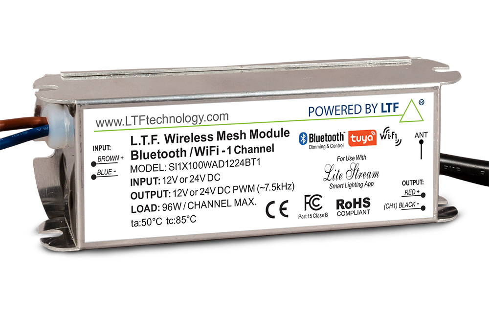 SI5X250WD1224BT5-3001 96W PER CHANNEL WIRELESS MESH MODEULE BLUETOOTH WIFI 12V TO 24V WIRELESS 5 CHANNEL RGBWW MODULE TUYA ENABLED C5 FORM FACTOR ALUMINUM CASE 5.709" L 2.913" W 1.035" H LTF |