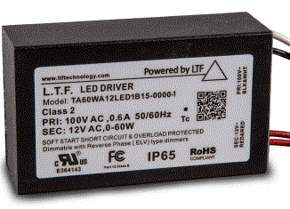 TA60WD12LEDB15RE 60W 12V DC ELECTRONIC TRANSFORMER 120V INDOOR RATED LTF |