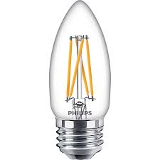 5B11/PER/UD/CL/G/E26/WGD 5W CLEAR FILAMENT B11 LED E26-MEDIUM SCREW BASE =60W 120V 2200K-2700K CRI-95 500LM DIMMABLE 300D BEAM ANGLE 15000HR T20/COMPLAINT L 3.56" D 1.38" |