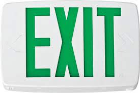LHQM-LED-G-HO-M6 SINGLE FACE PLATE STENCIL FACE GREEN LETTERED EXIT SIGN W/WHITE HOUSING (2) 1.5W 9.6V LED 120/277V T20/COMPLAINT |