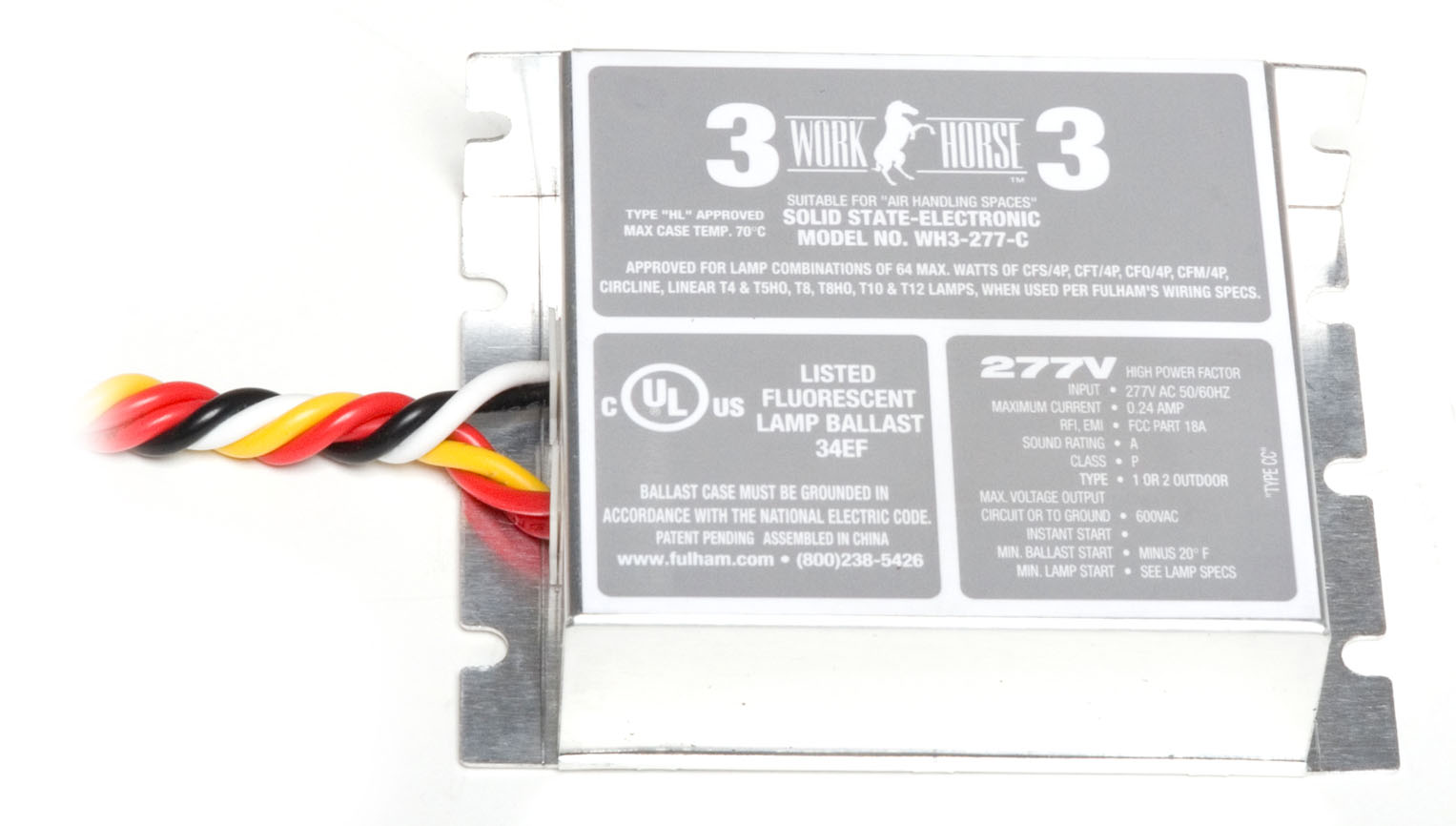 WH6-277-L 1L 2L 3L 4L ELEC BAL INSTANT S 277V WORKHORSE 6 LONG CASE |