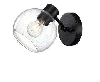 ABCO-6127800 1 WALL LIGHT MATTE BLACK FINISH CLEAR GLASS 60W MAX BULB E26-MEDIUM SCREW BASE H 7.25" W 6.50" EXTENSION 9.75" WESTINGHOUSE - HYSON |