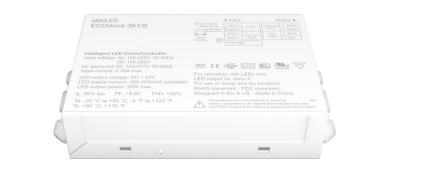 EC30U-M1A0A1-450MA-LIN eldoLED CC LED DRIVER EC30U 30W 108V-305V/IN 2VDC-55VDC/OUT LINEAR METAL PROGRAMMED TO 450mA + AUX 1 CONTROL CHANNEL PF>0.90 0-10V LINEAR DIMMING CURVE 65000HRS 11.02"L X 1.18"W X 14"H 0.49LBS EA |