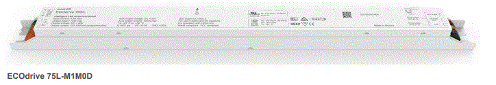EC75L-M1M0D2-PSU-57V-16VAUX-ON eldoLED LED DRIVER EC75L 75W 100V-277VAC/IN, 2V-55VDC/OUT 700mA-2100MA LEDcode2 LINEAR W/SIDE FEED DALI-2 TYPE 6 + AUX CLASS 2 HYDRA-DRIVE DIMMING PF:>0.90, 0- 10V LINEAR L 16.7" W 1.2" H 1.06" 0.9LBS |