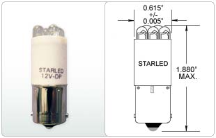 MB1197WC8NW-130V-DP-I 1.2W T3.25 STARLED MINIATURE BAYONET - BA9S 130V 1.19"MOL WHITE 7 CLUSTER |