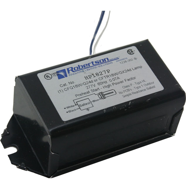 R-HP1827-VERSION-4 1L 18W CFL G24D 2P 277V MAG 60HZ BACK LEADS W/ STUDS |