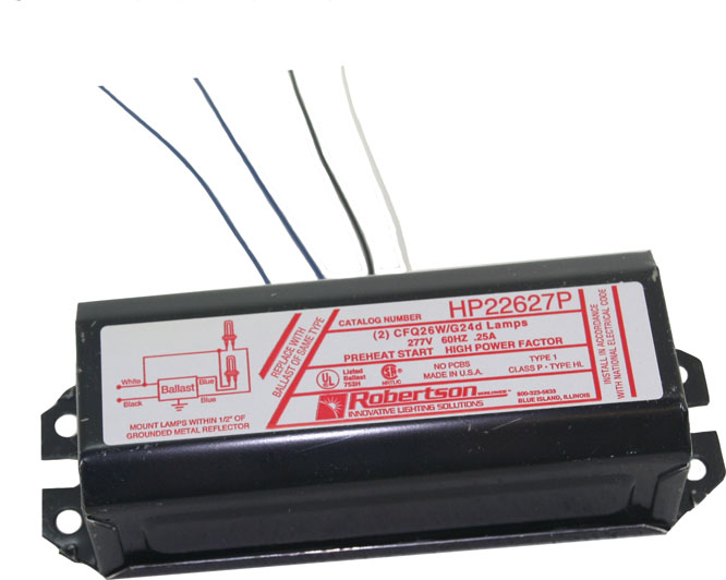 R-HP2627P-VERSION-4 1L 26W 2P CF 277V BOTTOM LEADS W/ STUDS HIGH POWER PRE HEAT MAG BAL 1.50 LB EA |
