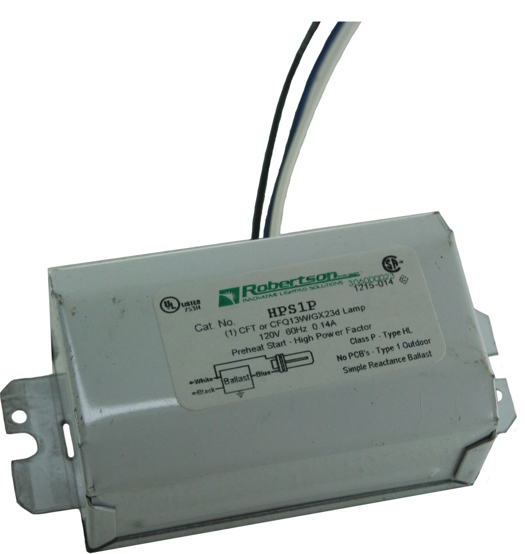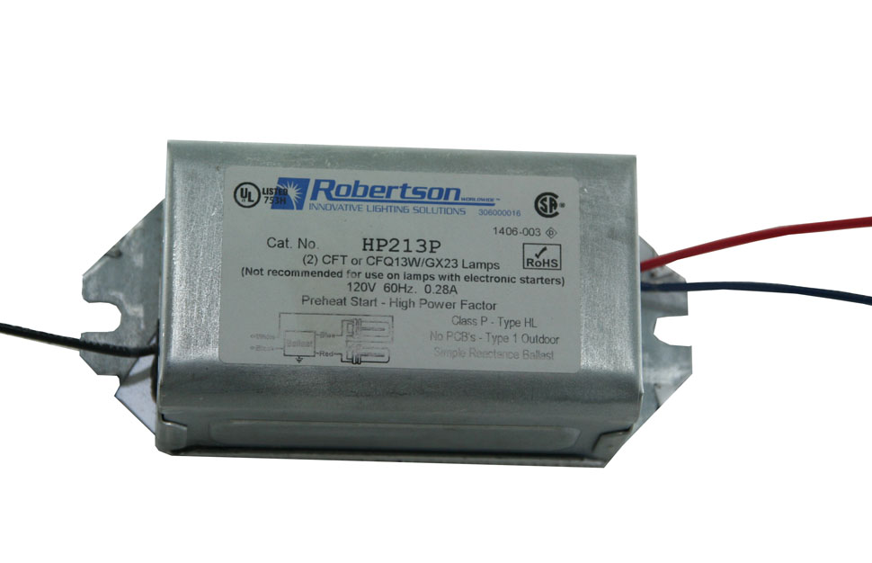 R-HP213P-VERSION-2 2L 13W MAGNETIC BALLAST CFL 2PIN TWIN TUBES 120V LEADS OUT OF BOTH ENDS |