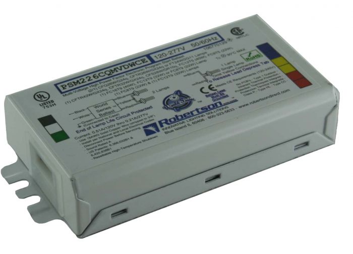 R-PSM226CQMVDWCE ELECTRONIC BALLAST PROG START 1/2L 22W 24W 26W 28W 32W 40W G10Q, GR10Q, G24Q, GX24Q, 2G11, 2GX13 120-277V HPF ENCASED/POTTED 5.00"L X 2.41"W X 1.00"H 0.80 LB EA |