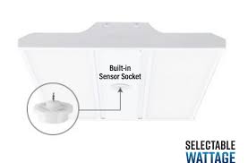 PQL-55716 185W 230W 270W LED 4' LINEAR HIGH BAY POWER-SELECT 120-277V 4000K 79CRI 27,750LM 34,500LM 40,500LM 120DEG BEAM ANGLE W/ BUILT-IN SENSOR SOCKET 50,000HRS WHITE FINISH 46.5"L 15.0"W 2.2"H |