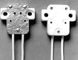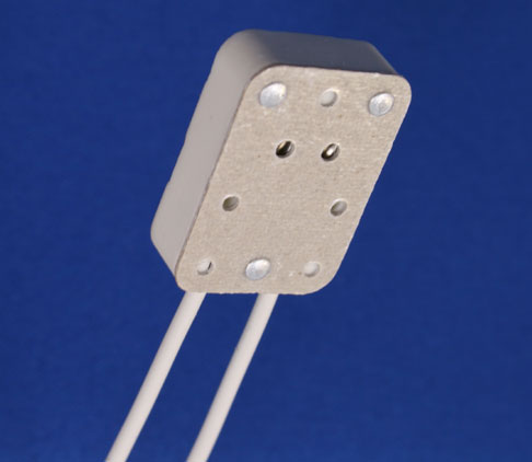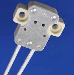 QEL-3 GX5.3 2PIN BASE SOCKET RATED 400W 60V W/ 2 4" LEADS- RECTANGULAR METAL AND CERAMIC HOLDER BUHL |