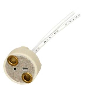 QLV1-L18 GX5.3 BIPIN LAMP HOLDER AND SOCKET WITH PFTE 18" LEADS 16ga- LOW VOLTAGE- FOR USE WITH MR16- 60V 12 AMPS 400 WATTS- |