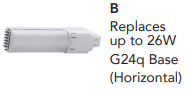 RP-G24Q-226V-2L-835-E1-K-G2 C-FLEX PL LED LAMP AND DRIVER KIT 2L =CF26 24W 1800LM 3500K 80CRI G24Q 4-PIN VERTICAL MOUNT SQUARE DRIVER W/ STUDS DIM DOWN TO 1% |