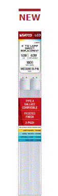 16W LED 48"/4' T12 FROSTED GLASS LINEAR TUBE W/PET COATING G13-MEDIUM BIPIN BASE =40W TYPE A- BALLAST COMPATIBLE DOUBLE ENDED CCT-SELECTABLE 3000K 4000K 5000K 6500K CRI>80+ 1700LM 1700LM 1800LM 1800LM DIMMABLE W/COMPATIBLE DIMMING BALLASTS 240DEG BEAM SPREAD 36000HRS DAMP LOCATION RATED L 47.74" D 1.42" 0.67LBS