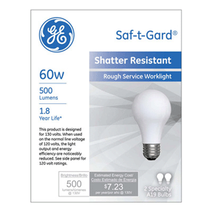 60W A19 ROUGH SERVICE SHATTER RESISTANT MEDIUM BASE 4.43"MOL 2.37"DIA NOT NOT TITLE 20 COMPLIANT