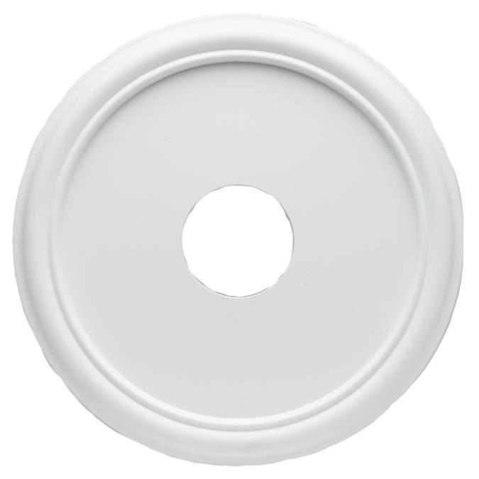 16" WHITE SMOOTH CEILING MEDALLION W/BANDED EDGE SMOOTH MOLDED PLASTIC 4" CENTER OPENING D 15.88" H 0.88"