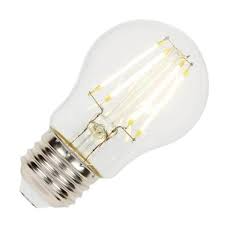 8W A15 LED GLASS CLEAR FILAMENT E26-MEDIUM SCREW BASE =75W 120V 3000K CRI-80 800LM 360DEG BEAM ANGLE 15000HRS ENCLOSED RATED L 3.23" D 1.85"