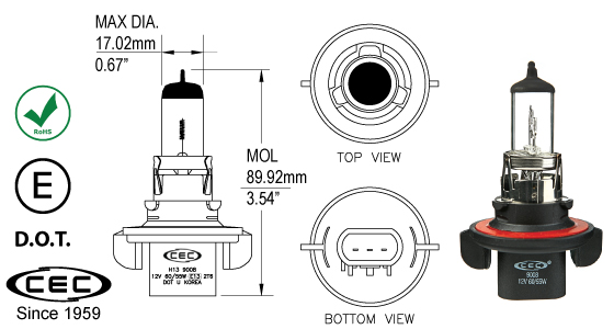 12V 65/55W H13 1500HRS HALOGEN HEAD LIGHT CA APPROVED