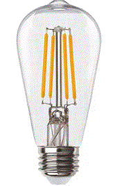 9W CLEAR GLASS ST19 LED FILAMENT E26-MEDIUM SCREW BASE =60W 120V 2700K CRI-90 800LM DIMMABLE 15000HRS T20/T24-COMPLIANT ENERGY STAR/UL RATED L 5.79" D 2.36" 0.05LBS