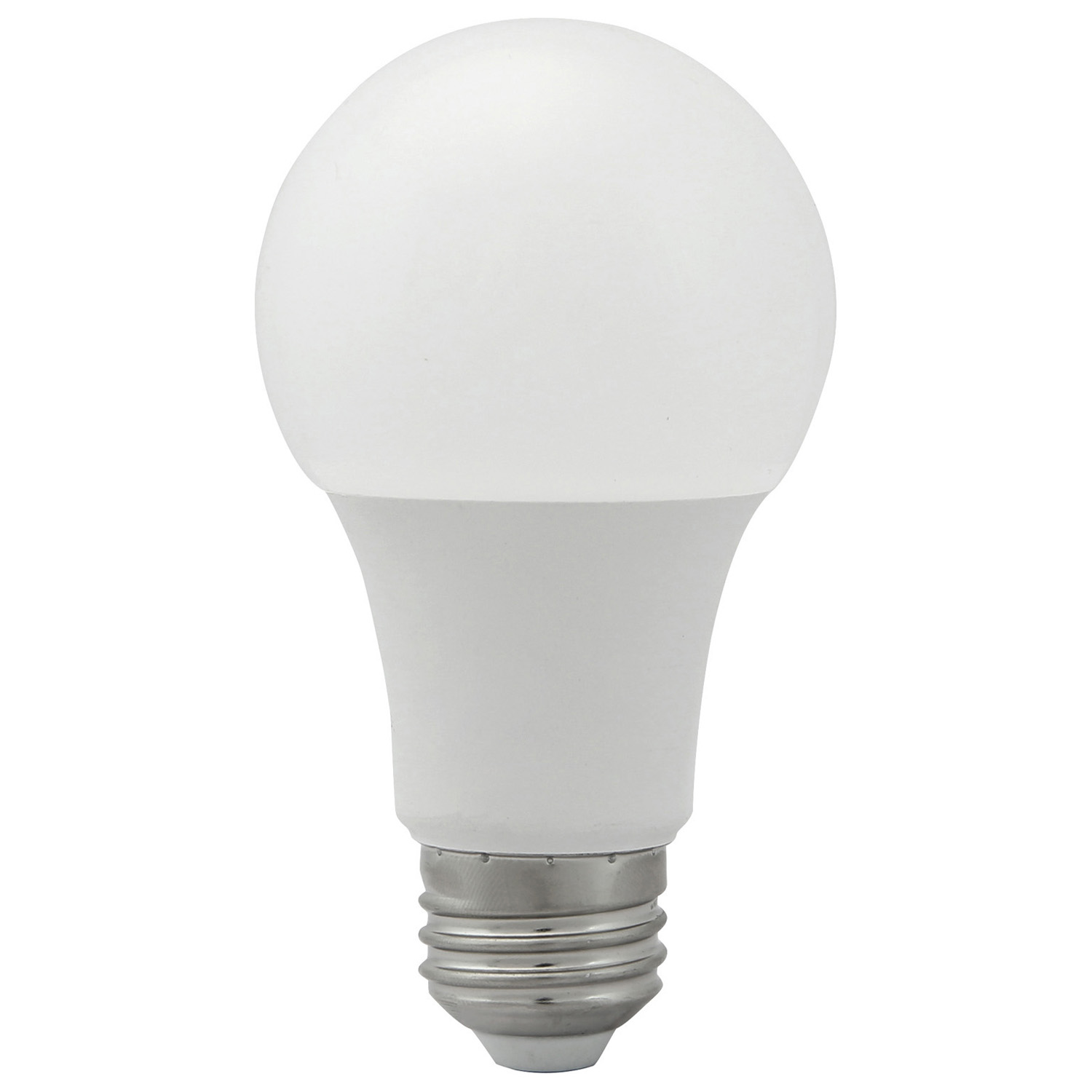 9W FROSTED PLASTIC A19 LED E26-MEDIUM SCREW BASE 100V-240V 3000K CRI-80 810LM 220D BEAM SPREAD L 4.25" D 2.36" 0.09LB
