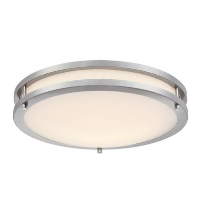 23W LED 16" ROUND INDOOR FLUSH MOUNT CEILING FIXTURE =100W CCT SELECT 2700K 3000K 3500K 4000K 5000K 2000LM 50000HRS BRUSHED NICKEL FINISH W/FROSTED ACRYLIC SHADE LAUDERDALE D 15.75" H 3.50"