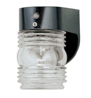 HIGH IMPACT POLYCARBONATE WALL FIXTURE W/DUSK TO DAWN SENSOR CLEAR GLASS W/BLACK FINISH 60W MAX E26-MEDIUM SCREW BASE H 6.00" W 4.50"