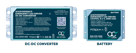 10W LED EMERGENCY DRIVER CP-CONSTANT POWER 120V-277VAC/IN 8W @ 110mA/IN 15V-55VDC/OUT 180mA-670mA 3KVP SURGE PROTECTION W/TEST SWITCH & 9.6V BATTERY @ 185mA 90MIN RUNTIME 2-PC MODULAR DESIGN DRIVER DIMENSIONS: L 5.23" W 2.48" H 1.18" BATTERY DIMENSIONS: L 3.35" W 2.44" H 1.38"