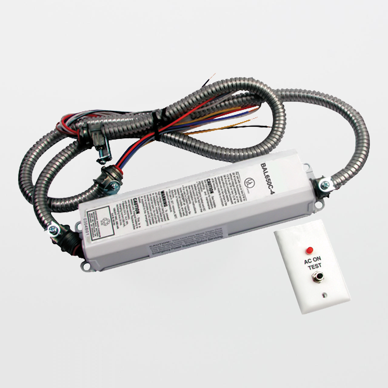 1L OR 2L T8 T12 4PIN CFL FLUORESCENT EMERGENCY BALLAST 120-277V 350LM- 750LM DEPENDENT ON LAMP L 9.4" W 2.4" H 1.5" NOT TITLE 20 COMPLIANT