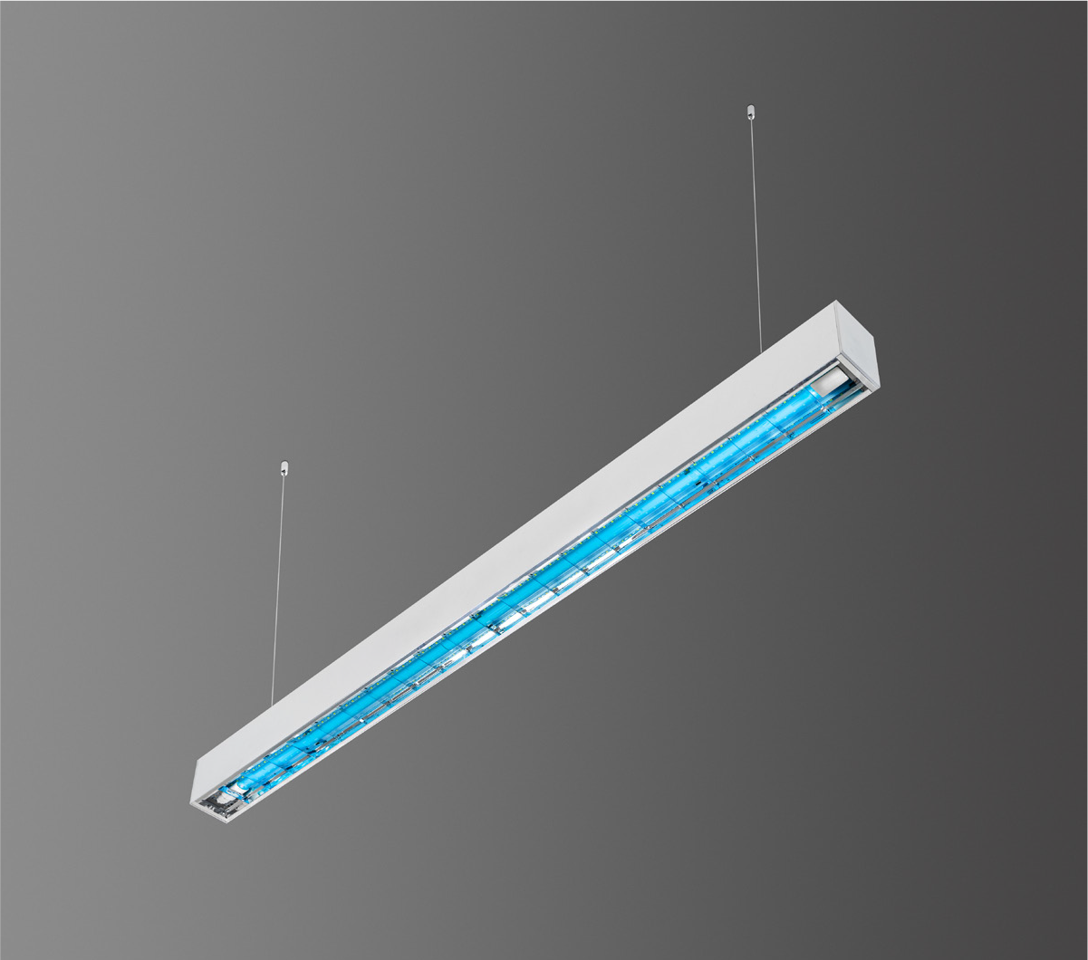 120W UVC GERMICIDAL & 25W LED 4' LINEAR COMBO LIGHT FIXTURE WITH LED FOR ILLUMINATION AND GERMICIDAL FOR DISINFECTION 253.7nm UV-C 2750LM LED 3000K 120-277V W/ MOTION SENSOR AND WIRELESS CONTROL BLUETOOTH MESH L 48" W 2.75" H 3.13"